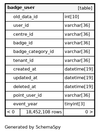 | fk_badge_user_2_idx | Performance | Asc | centre_id |