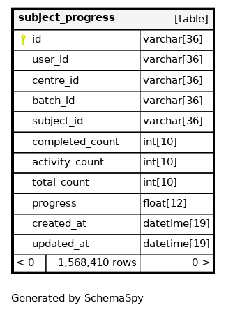 | unique_subject_user | Must be unique | Asc/Asc/Asc | user_id + subject_id + centre_id |